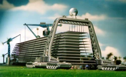 The construction of these industrial and research complexes in the Circular City can be carried out by robotic equipment that will receive instructions via satellite. Automated cranes travel along the buildings' length installing floors, windows, curtain walls, roofing, and other components from the ground up. These devices will contain sensors to minimize industrial accidents or collisions with other devices or living beings.
